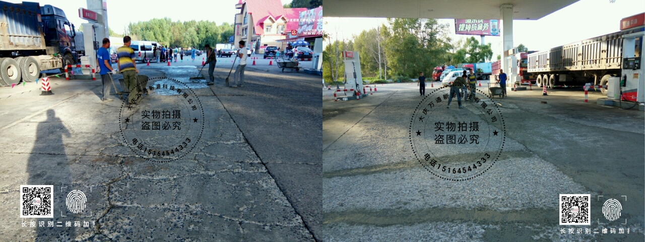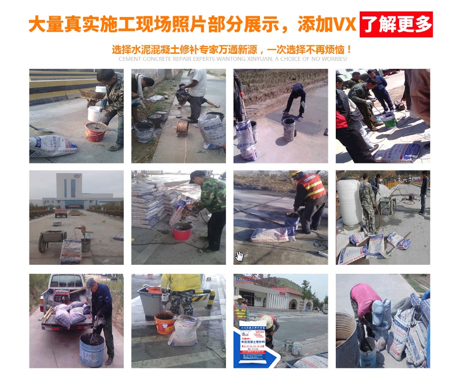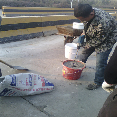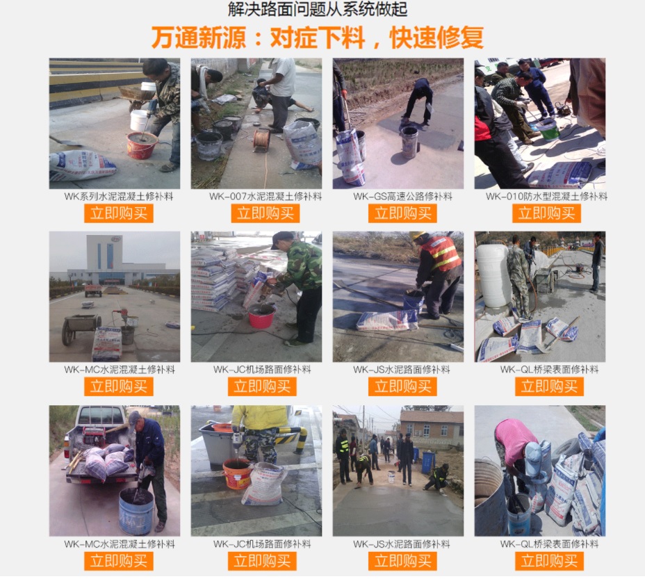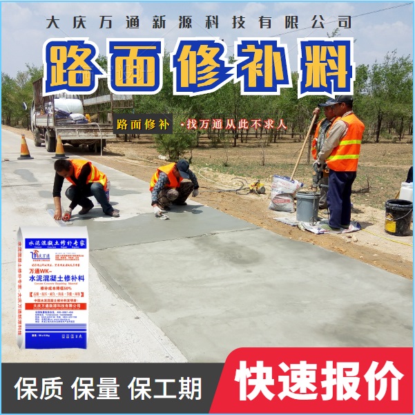 大慶萬通新源科技有限公司獨(dú)有的混凝土路面高強(qiáng)速補(bǔ)料,是水泥混凝土路面病害修復(fù)的好材料。疲勞、凍融循環(huán)、彎曲壓力、滲水和基層破壞等原因都會(huì)引起水泥路面的破損,從而帶來高昂的維護(hù)費(fèi)用。與以往的剛性修補(bǔ)方法不同,混凝土水泥路面維修速補(bǔ)膠提供了一種獨(dú)特的柔性修補(bǔ)產(chǎn)品和技術(shù),高柔性、高抗拉性,可跨伸縮縫施工和高抗壓性使得混凝土快補(bǔ)產(chǎn)品為水泥混凝土路面提供了******性的修補(bǔ)。傳統(tǒng)的剛性修補(bǔ)方案,如環(huán)氧砂漿和快干水泥產(chǎn)品,由于其自身的粘結(jié)失效,抗疲勞性低以及與原路面不同的伸縮系數(shù),修補(bǔ)面會(huì)在短時(shí)間內(nèi)失效或產(chǎn)生新的裂縫,需要反復(fù)修補(bǔ),有效期短且費(fèi)用高昂。大慶萬通新源科技有限公司的混凝土水泥路面維修速補(bǔ)膠可以隨原路面一起伸縮,移動(dòng),從而避免了粘結(jié)失效和產(chǎn)生新裂縫。萬通快補(bǔ)產(chǎn)品優(yōu)異的粘結(jié)性、柔韌性和高防滑性,特別適用于水泥路面的淺層粘合修補(bǔ),多邊角混凝土板層修補(bǔ),跨伸縮縫修補(bǔ)以及路面沉陷修補(bǔ)。萬通混凝土病害修補(bǔ)料針對混凝土起皮起沙、斷板裂縫、蜂窩麻面、坑槽露石子、漏筋掉皮、橋梁的掉皮漏筋快速通車使用時(shí)間長。應(yīng)用萬通快補(bǔ)產(chǎn)品,施工后一天就可以恢復(fù)交通。大慶萬通新源科技有限公司的萬通水泥路面維修速補(bǔ)膠適用于高速公路、機(jī)場路面、農(nóng)村村村通路面、廠坪、學(xué)校操場、市區(qū)公路、小區(qū)路面、橋梁、水泥路面的修補(bǔ)。使用萬通特快補(bǔ)材料修補(bǔ)路面可以一勞永逸! 水泥地面起砂怎么辦,混凝土修補(bǔ)劑混凝土地面起砂,混凝土地面修補(bǔ),地面起砂怎么辦,